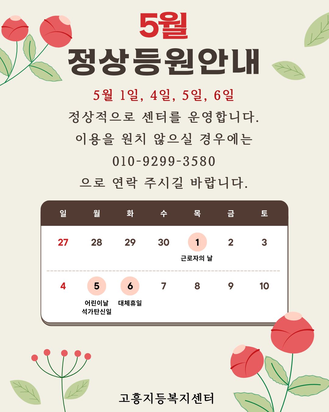 5월 정상등원 안내입니다.